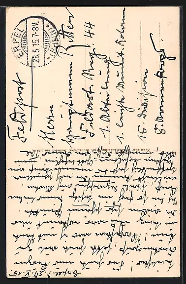 alte Ansichtskarte, gelaufen 1915, Eckknick li. unten, guter Zustand