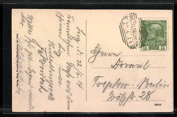 alte Ansichtskarte, gelaufen 1914, Stempelspur, guter Zustand