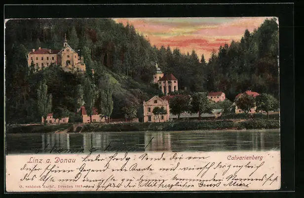 AK Linz a. D., Abendstimmung am Calvarienberg