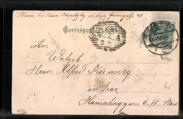 gelaufen 1904, Ecken bestoßen, guter Zustand