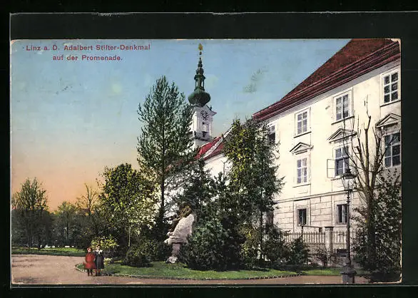 AK Linz a. D., Adalbert Stifter-Denkmal auf der Promenade