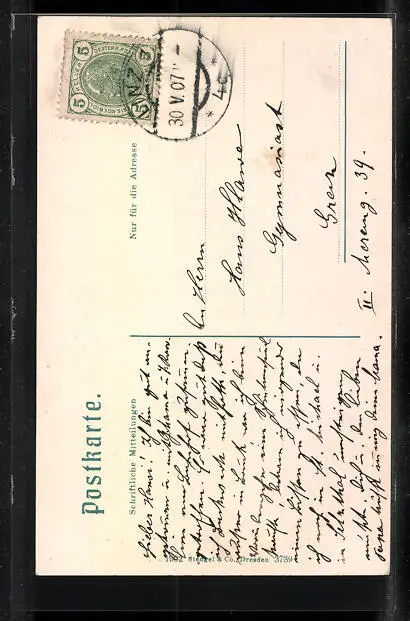 alte Ansichtskarte, gelaufen 1907, guter Zustand