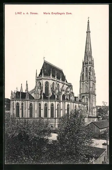 AK Linz a. D., Ansicht des Maria Empfängnis Dom