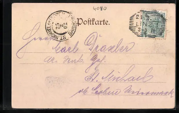 alte Ansichtskarte, gelaufen 1902, Eckknick li. oben, guter Zustand