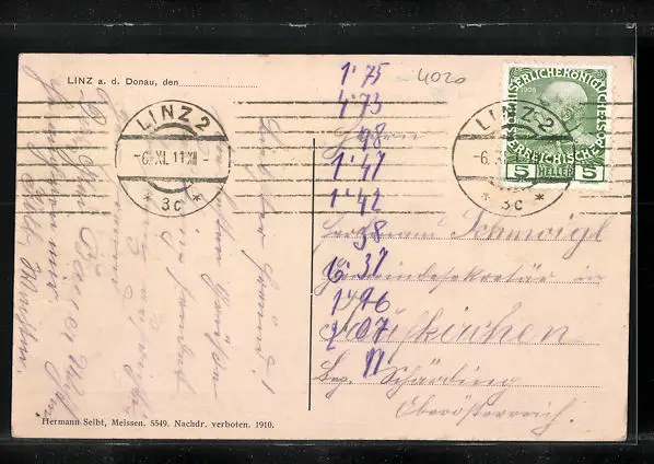 alte Ansichtskarte, gelaufen 1911, Stempelspur, guter Zustand