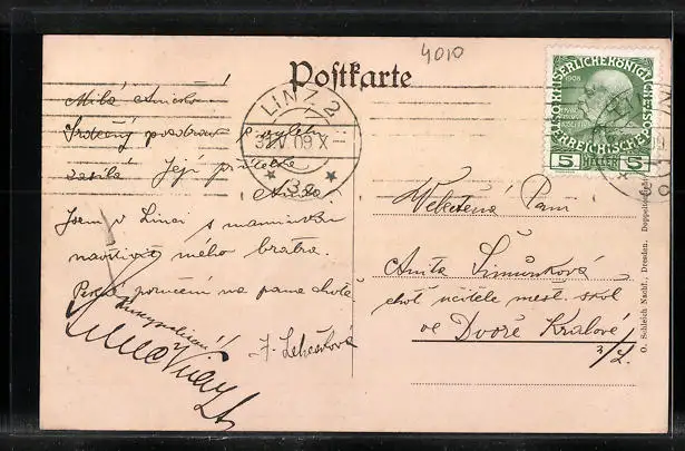 alte Ansichtskarte, gelaufen 1909, guter Zustand