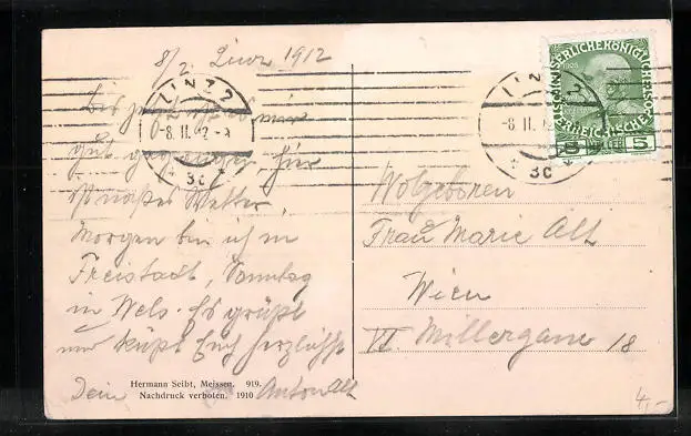 alte Ansichtskarte, gelaufen 1912, guter Zustand