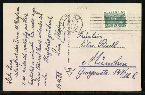 alte Ansichtskarte, gelaufen 1933, guter Zustand