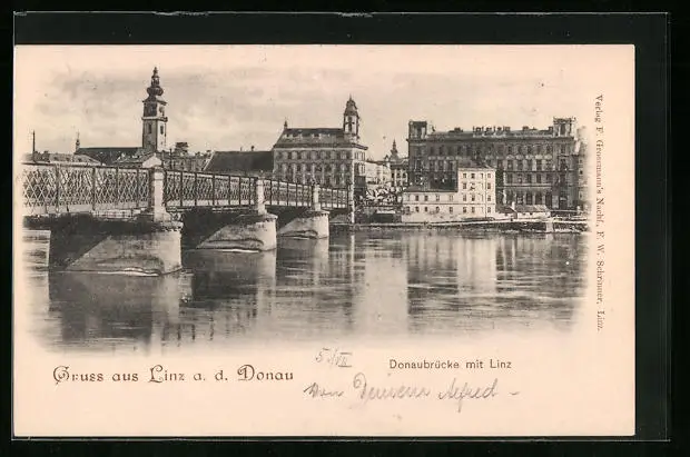 AK Linz a. D., Donaubrücke gegen Zentrum