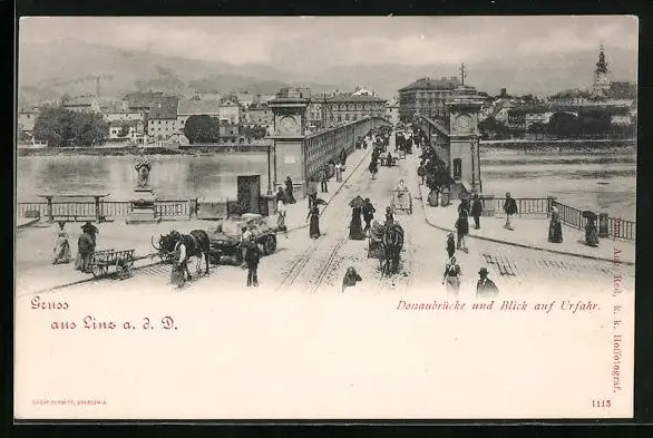 AK Linz a. D., Donaubrücke und Blick auf Urfahr