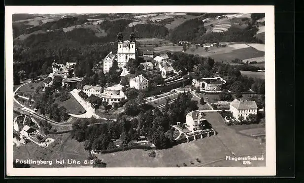 AK Linz a. D., Fliegeraufnahme vom Pöstlingberg