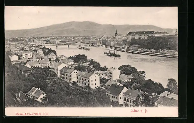 AK Linz a. D., Flusspartie aus der Vogelschau