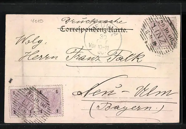 gelaufen 1900, Eckknick unten li., guter Zustand