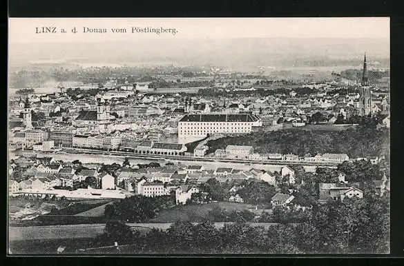 AK Linz a. D., Gesamtansicht vom Pöstlingberg