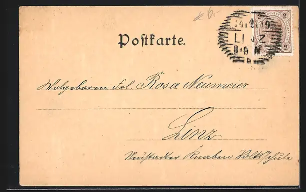 alte Ansichtskarte, gelaufen 1899, guter Zustand