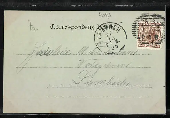 alte Ansichtskarte, gelaufen 1899, Stempelspur, Eckknick li. unten, Stempelspur, guter Zustand
