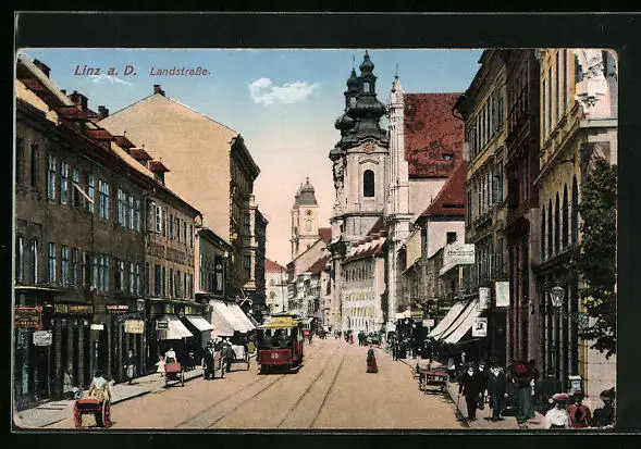 AK Linz a. D., Landstrasse mit Strassenbahn
