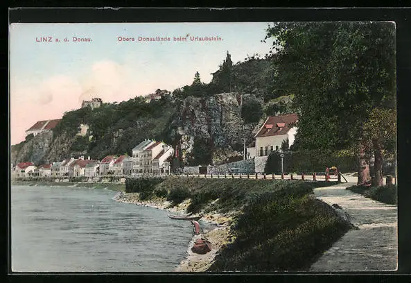 AK Linz a. D., Obere Donaulände beim Urlaubstein