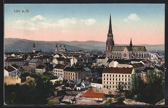 AK Linz a. D., Ortsansicht aus der Vogelschau