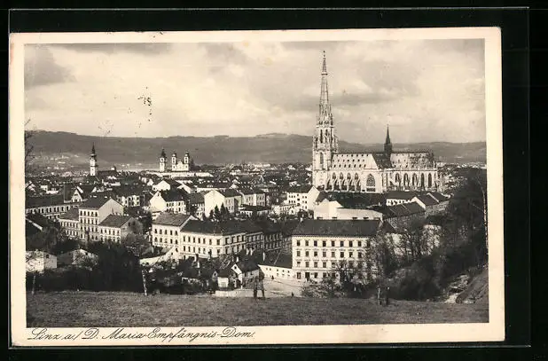 AK Linz a. D., Ortsansicht mit dem Maria-Empfängnis-Dom