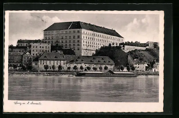 AK Linz a. D., Ortsansicht vom Wasser aus