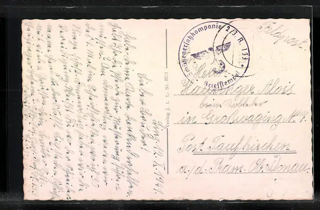 alte Ansichtskarte, gelaufen als Feldpost, Eckknick oben re., guter Zustand