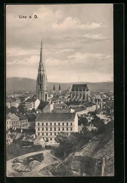 AK Linz a. D., Ortspartie mit Kirche