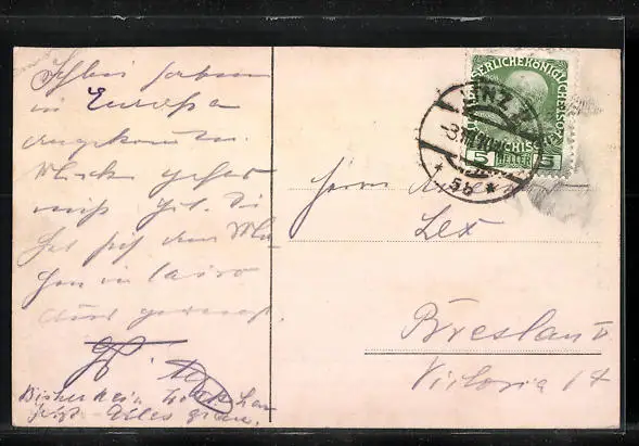 alte Ansichtskarte, gelaufen, Stempelspur, Eckknick oben re., guter Zustand