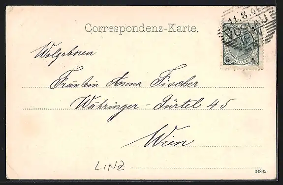 gelaufen 1904, Eckknicke li. oben u. re. unten, guter Zustand