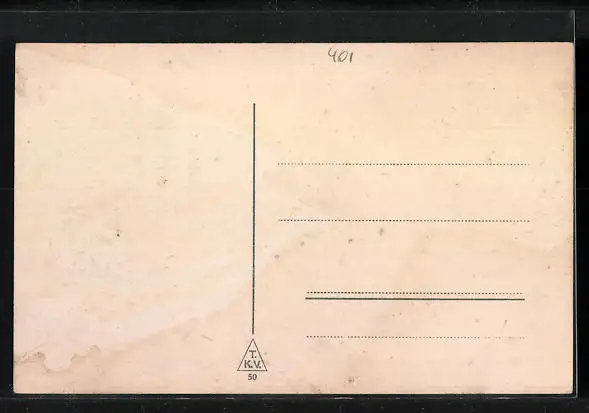 Personenbezogene Daten auf der Rückseite der Karte wurden durch blauen Textmarker unkenntlich gemacht. Die blauen Stellen sind auf die Vorderseite durchgeweicht und wirken sich negativ auf das Postkartenfoto aus