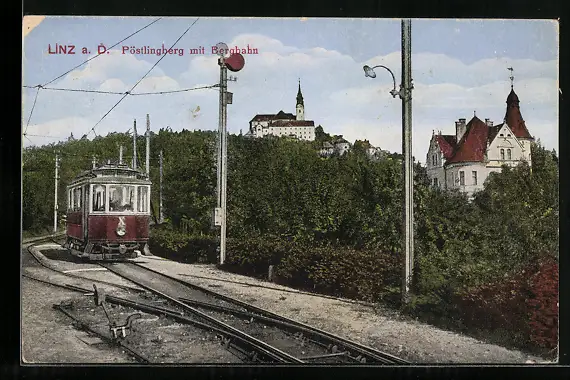 AK Linz a. D., Pöstlingberg mit Bergbahn