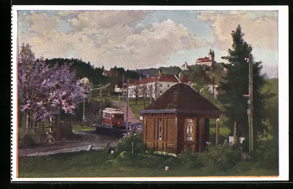 AK Linz a. D., Pöstlingberg mit Bergbahn