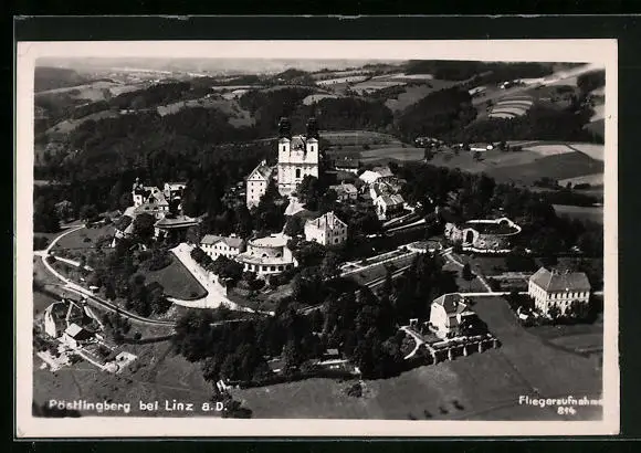 AK Linz a. D., Pöstlingberg mit Kirche, Fliegeraufnahme