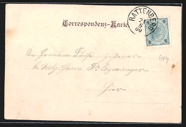 alte Ansichtskarte, gelaufen 1900, Eckknick unten re., Rand beschnitten