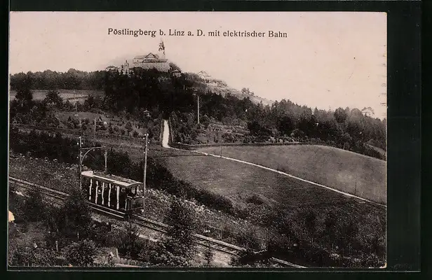 AK Linz a. D., Pöstlingberg mit elektrischer Bahn, Bergbahn