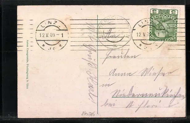 alte Ansichtskarte, gelaufen 1909, Stempelspur, guter Zustand