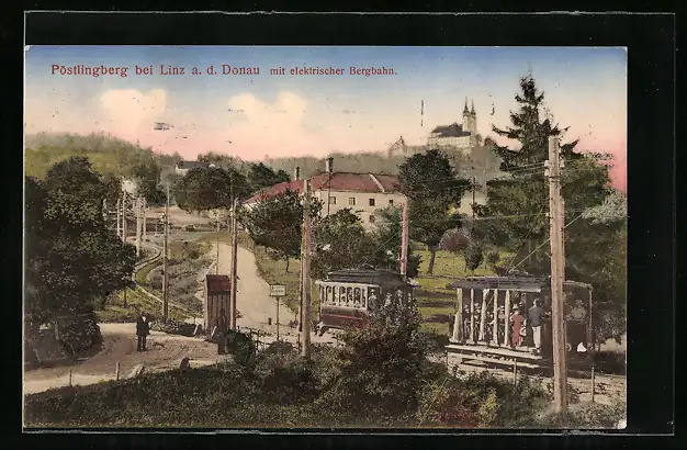 AK Linz a. D., Pöstlingberg mit elektrischer Bergbahn
