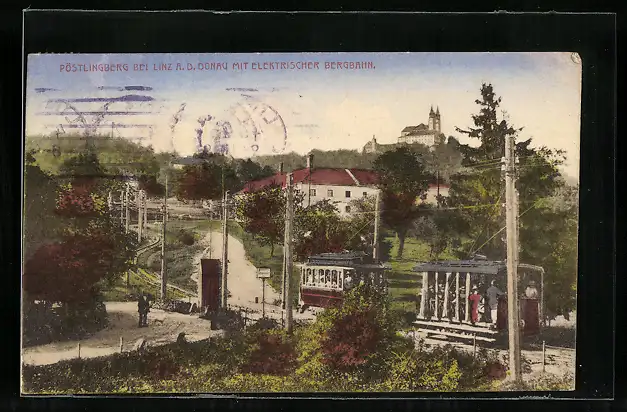 AK Linz a. D., Pöstlingberg mit elektrischer Bergbahn