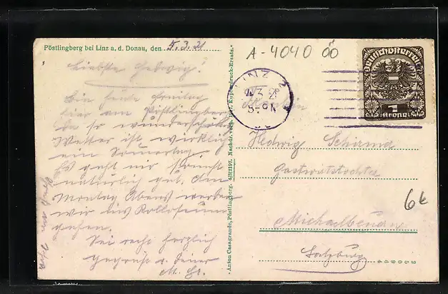 alte Ansichtskarte, gelaufen 1921, Stempelspur, guter Zustand