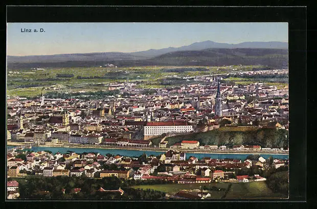 AK Linz a. D., Stadt vor Bergpanorama