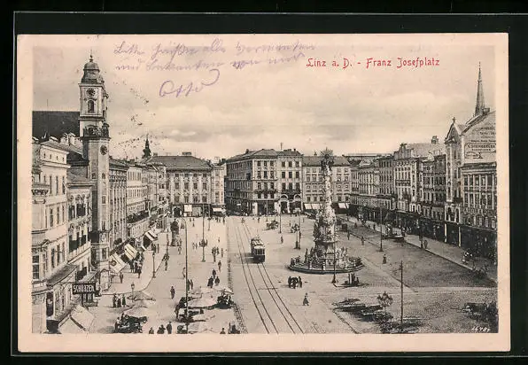 AK Linz a. D., Strassenbahn am Franz Josefplatz