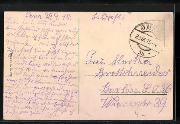 alte Ansichtskarte, gelaufen 1915 als Feldpost, guter Zustand