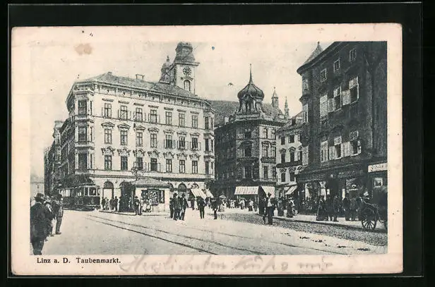 AK Linz a. D., Strassenbahn am Taubenmarkt