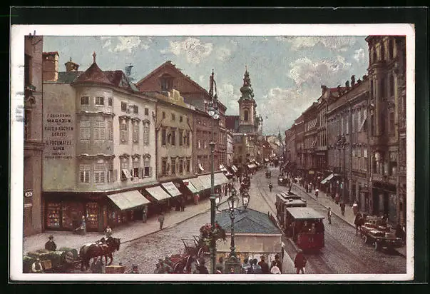 AK Linz a. D., Strassenbahn auf der Landstrasse