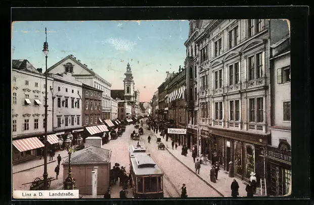 AK Linz a. D., Strassenbahn in der Landstrasse
