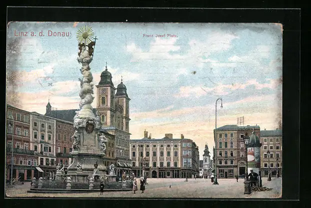 AK Linz a. D., Strassenpartie am Franz Josef Platz