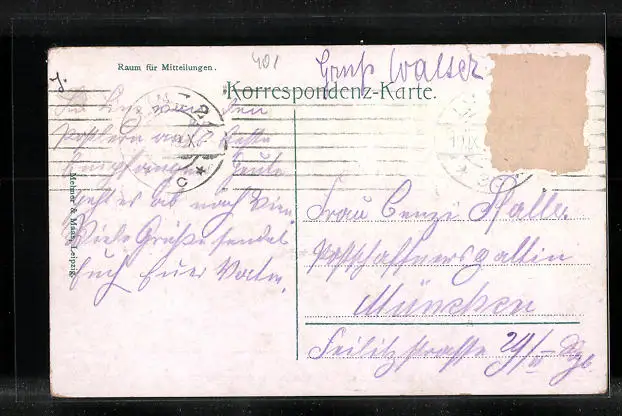 alte Ansichtskarte, gelaufen 1909, Briefmarke entfernt, rückseitig Oberflächenschaden, Stempelspur, Einriss oben li., guter Zustand