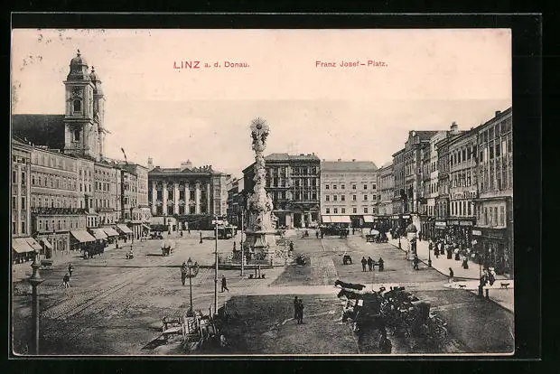 AK Linz a. D., Strassenpartie am Franz Josef-Platz