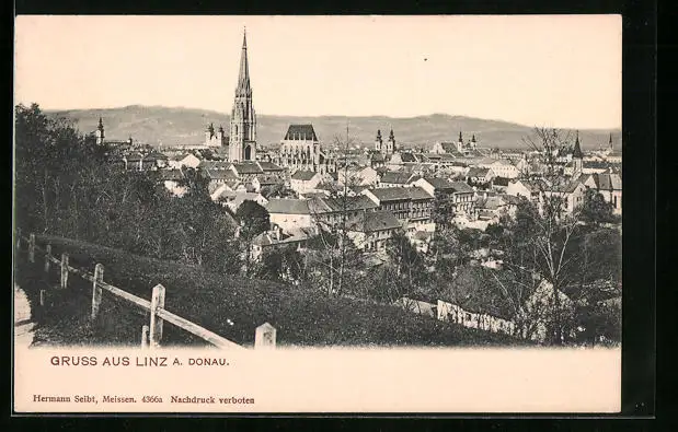 AK Linz a. D., Totalansicht mit Blick zom Dom