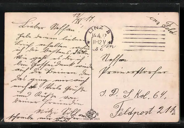 alte Ansichtskarte, gelaufen 1917 als Feldpost, guter Zustand
